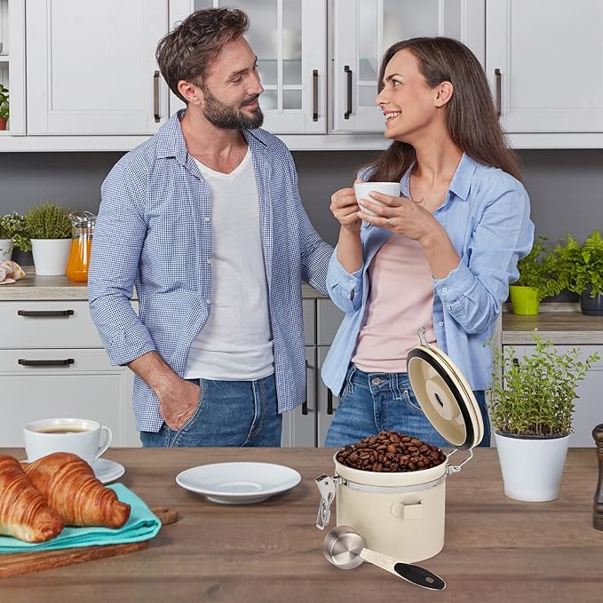 - 【VERSATILE SIZE – FITS VARIOUS STORAGE NEEDS】With a balanced capacity, this canister provides ample space for daily coffee storage without taking up too much counter space. Its clean, minimalist design complements any kitchen decor. Keeps your coffee away from air, moisture, heat, and light—key factors in preserving flavor.