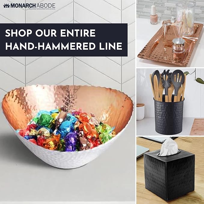 - PERFECT SIZE FOR HOME DECOR: Measuring 7.5 x 6.75 x 3.5 inches, this large decorative bowl is ideal for both practical use and stylish display. Great as a modern fruit bowl, decor bowl, or key dish bowl for entryway table—a standout addition to any room. Its hammered design and exquisite finish make it an attractive centerpiece for any kitchen countertop, dining table, or coffee table, adding a touch of sophistication to your home decor.
