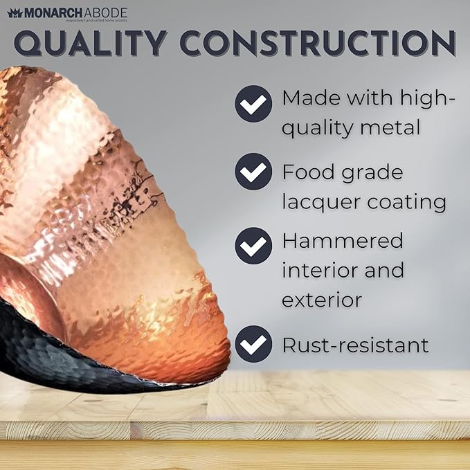 - PREMIUM QUALITY CONSTRUCTION: Crafted from durable metal with a luxurious white and copper plating, this decorative bowl features a hand-hammered texture inside and out. Protected with a food-grade lacquer, this key holder bowl resists rust and is built to last with everyday use. The solid aluminum construction ensures these bowls are rust-resistant, making them durable and long-lasting. Ideal for serving snacks, nuts, or holding small trinkets.