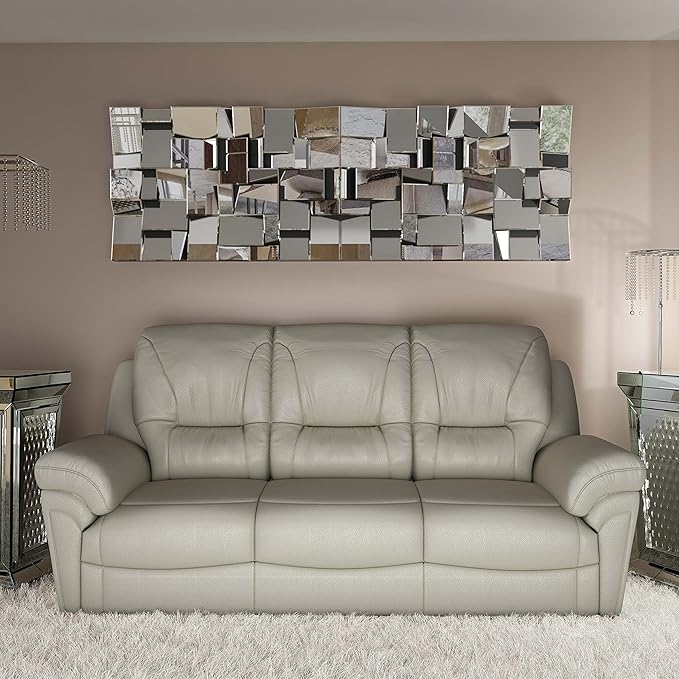 - ✨UNIQUE DESIGN: This 29.5" x 44.3" wall mirror is crafted from 48 mirrors of varying sizes, designed to reflect light from diverse angles. Each mirror features a beveled edge, enhancing visual depth and high-definition imaging for clear, distortion-free reflections. A stunning decorative piece, it suits living rooms, entryways, or bedrooms, infusing home decor with a touch of modern artistic flair.
