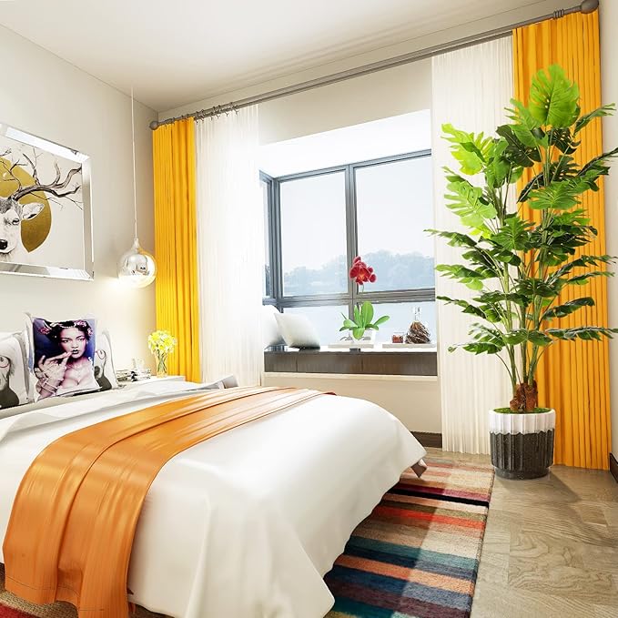 - 【HIGHLY REALISITC DESIGN】 This artificial tree is made of durable and premium polyester material, contains simulation textured monstera deliciosa adansonii leaves which made rubber silk fabric, the pot is covered with a layer of real moss, these designs make it to be life-like in appearance, the pot is made of solid cement which to prevent children, pets knock it down.