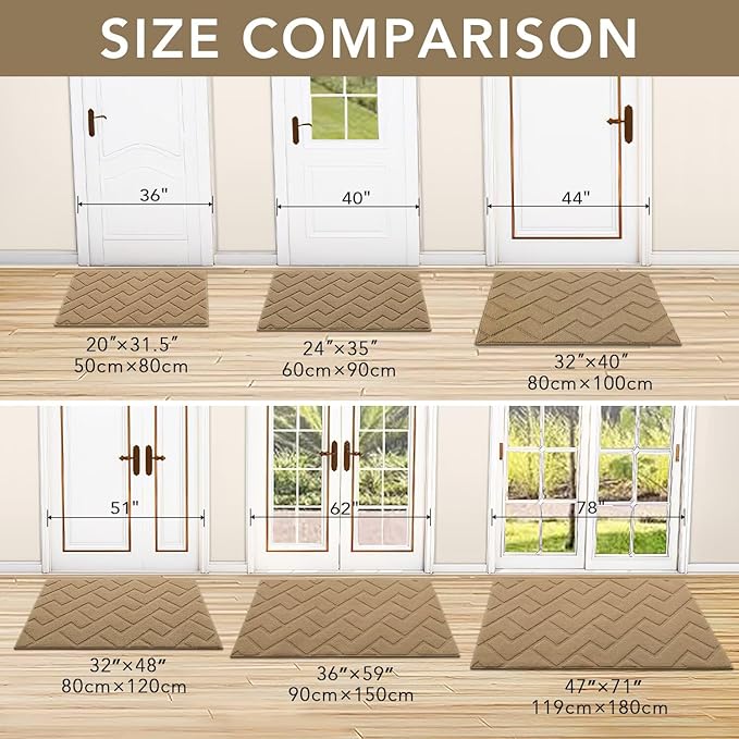 hicorfe Front Door Mat Outside Entrance,36"x59" Absorbent Muddy Dirt Resist Welcome Door Mats Outdoor Indoor,Stain and Fade Resistant,Non Slip Backing Entry Mat Doormat for Entryway(Brown)