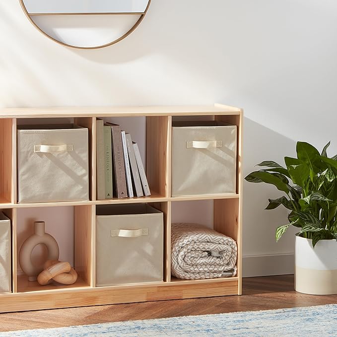 Amazon Basics Collapsible Fabric Storage Cube Bins Organizer with Handles, Sturdy, Beige, 13-x-13-x-13-inch, Pack of 6