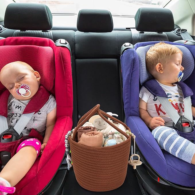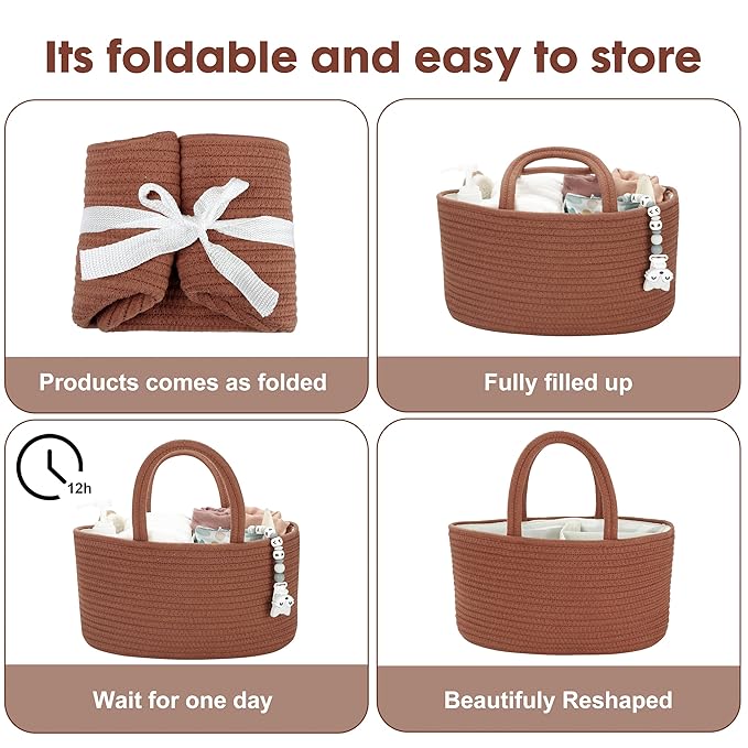 Baby Diaper Caddy Organizer for Girl Boy Cotton Rope Nursery Storage Bin Basket Portable Holder Tote Bag for Changing Table Car Travel Baby Shower Gifts Newborn Essentials Registry Must Have Rust