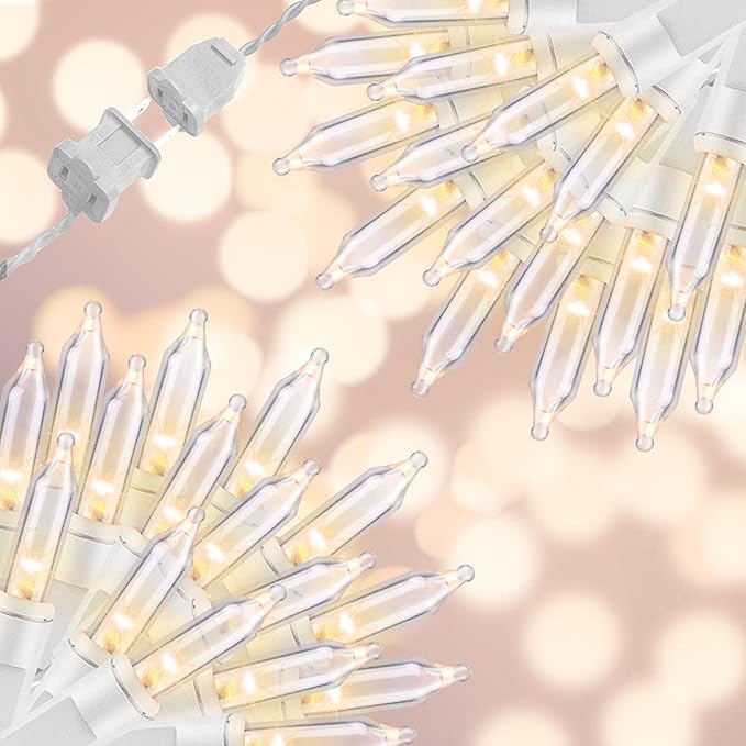 - Safty and Easily: High quality UL certified products ensure the safety of you and your family, Decorate with 150 clear incandescent mini lights with white wire will give a soft festive feel to your Christmas.