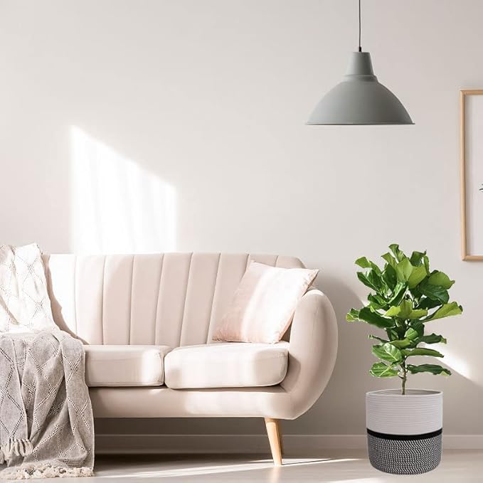 Cotton Rope Plant Basket Modern Woven Basket for 10" Flower Pot Floor Indoor Planters,Storage Organizer Toys Rustic Home Decor,Beige 11"x 11"