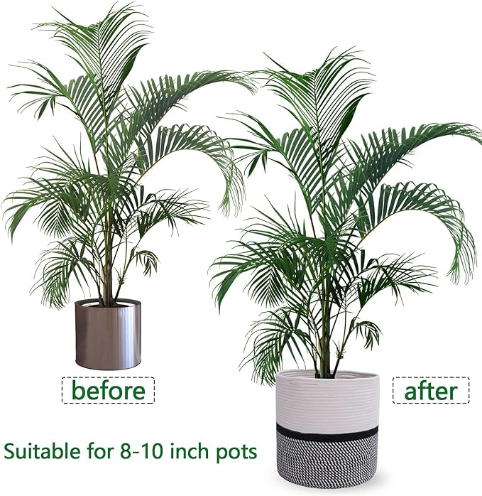 - 🌻【FITS 7"-10" PLANT POT】BEST fit 8-10" pot, If your favorite plants are using ordinary plastic flower pots, ceramic planter or grow bags, cotton rope pot covers will provide unique charm