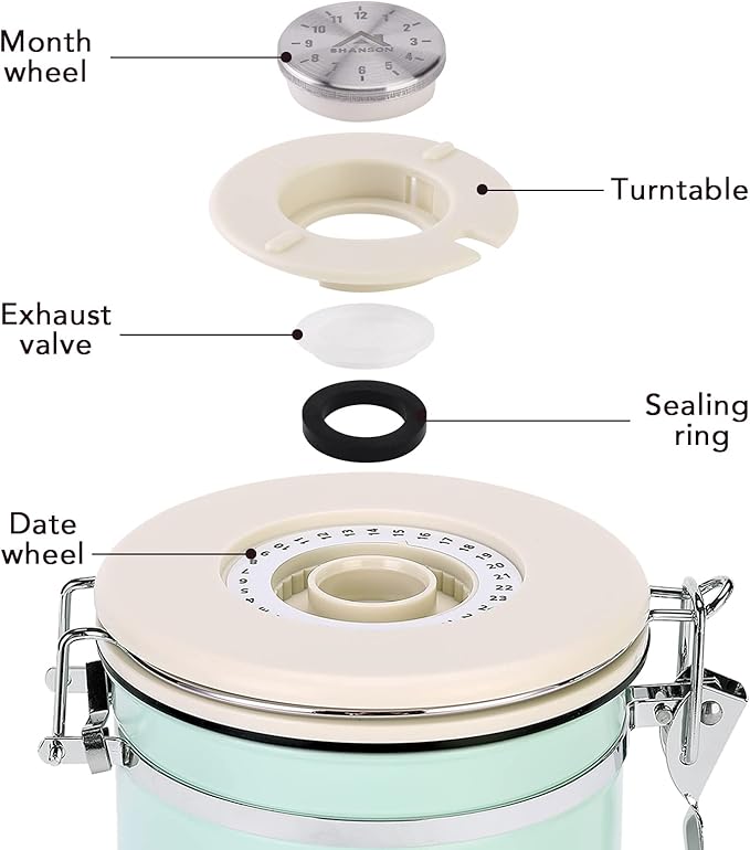 - 【TWO EXHAUST MODES】The canister features a CO₂ valve system and a silicone seal to lock in freshness and keep out moisture and air. A silicone gasket around the edge of the lid ensures an airtight seal when the lid is closed. Storing your coffee beans in this well-designed canister helps extend their freshness and ensures that every cup, even weeks later, tastes as good as the first.