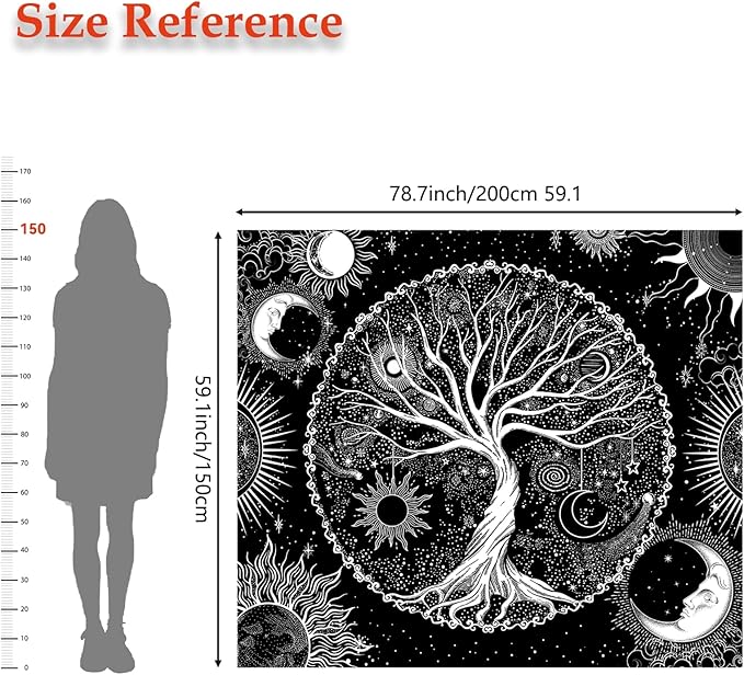 AACKart Tree of Life Tapestry for Bedroom Aesthetic Room Decor-Black and White Spiritual Tree Tapestry Wall Hanging with Sun Moon Star 78.7×59.1 inches