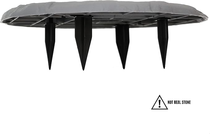 - MADE OF RESIN (PLASTIC) – Both the stepping stones and ground stakes are made of Resin (Plastic). Resin is a more durable type of plastic that is made for outdoor use.