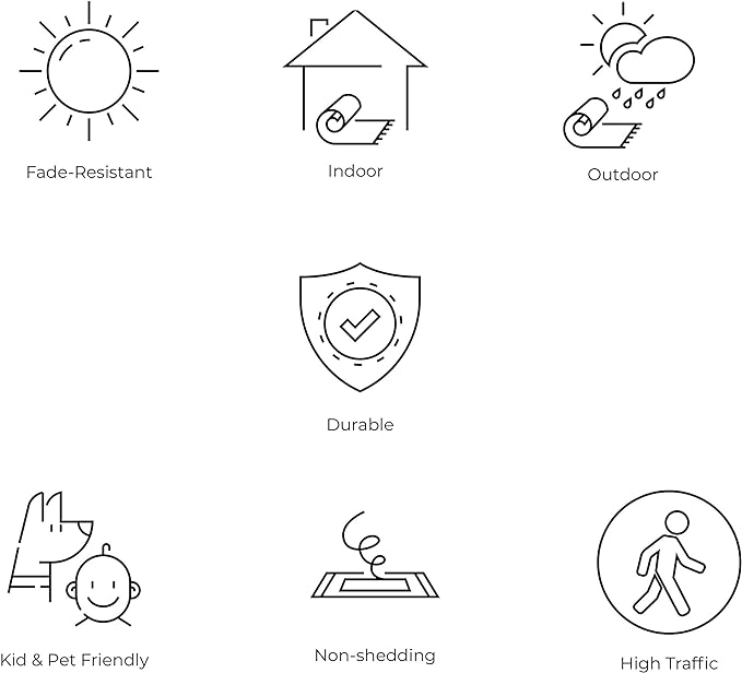 - INDOOR/OUTDOOR DURABILITY: Give your patio, deck or porch an instant makeover with an indoor/outdoor rug; Low-pile synthetic rug fibers are durable for high-traffic spaces like the kitchen, mud room or entry; Perfect for families with kids