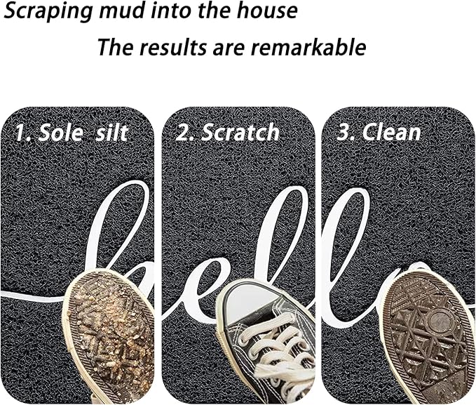 - ❤️【Dirt Catching Door mat】The front door mat concave lettering and raised edges help the rubber mat trap dirt more effectively. Simply scrape your shoes back and forth across the doormat a few times and any dirt, mud or snow on your shoes or pets will be removed, keeping your floors clean and dry.