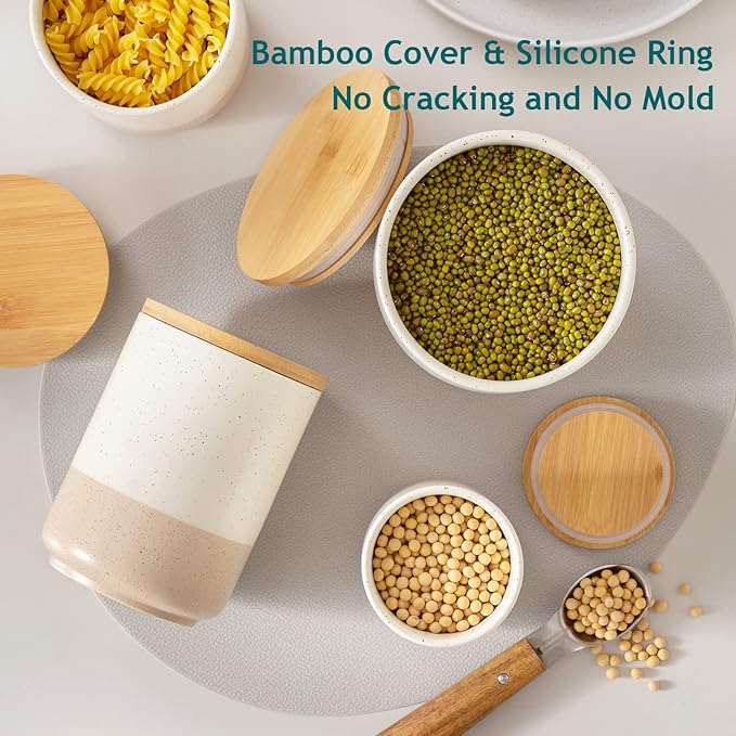 - 【Durable & Stylish Material】Made from high-quality terracotta ceramic, these canisters are more durable than plastic or glass. The smooth, glazed surface is easy to clean and dishwasher-safe (wooden lids are hand wash only)