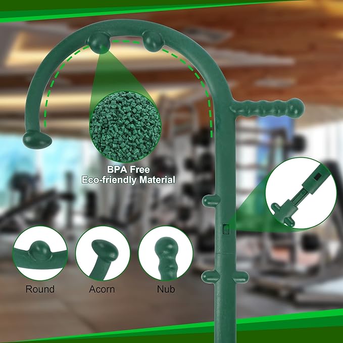 - 10 Massage Knobs: This highly durable and stable massager rod has 10 massage knobs with 3 types - the acorn shape for deep tissue, round for gliding over larger muscle groups, and nub for the lower back. pinpoint the pressure points throughout your body, when pressed against various trigger points or pressure points throughout the body, can provide rapid relief