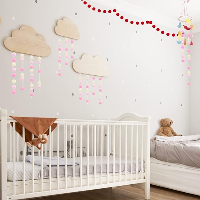 - POLYSTYRENE PREMIUM QUALITY: Our felt pom pom balls are made of high-quality polystyrene fiber and string together with white neutral chunky cotton yarn cord rope, polystyrene is an eco-friendly material, the mini felted balls has Multi Pink Color with Pink, Light Pink and Beige, solid and beautiful, fluffy and lightweight, bright and colorful, soft and comfortable, durable and reusable, so our sweet polystyrene felted pompom balls are more better than wool felt balls.