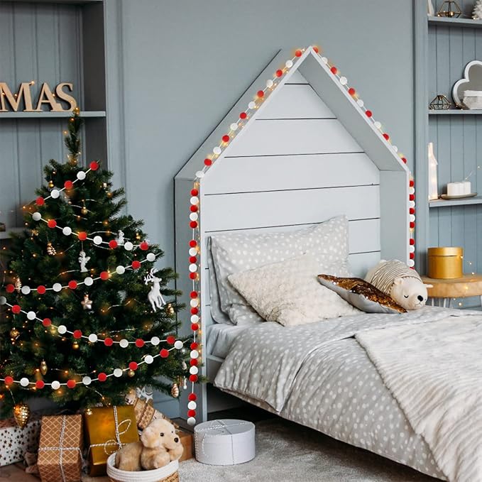 - OCCASIONS: Vintage modern style cute kawaii lovely special design, adding a warm rustic feel. It's easy to hang and can be hung anywhere, perfect funky eclectic decor for home, office, kids playroom, students classroom. The red color felt balls likes little red berries and the white felt balls likes small snowballs, so it's a great Christmas decorations for indoor home, outdoor yard garden, living room, bedroom, stair railing, fireplace, ceiling, wall, door, window, gift basket, tree, mantle.
