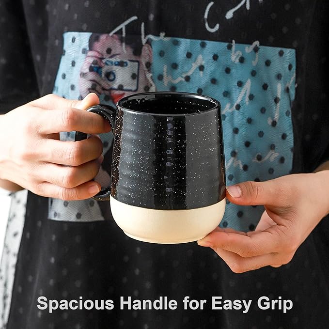 Hasense Coffee Mugs Set of 4, 15 Ounce Ceramic Coffee Cups with Handles, Porcelain Large Latte Mug for Coffee Cappuccino Tea, Black Mugs for Men, Women Christmas Holiday Gift
