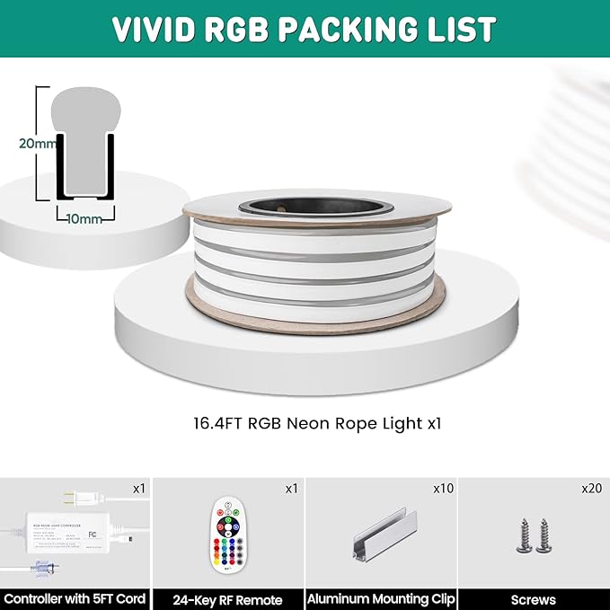 - Remote Sync & Command--Control up to 4 neon ropes with one remote! Effortlessly pair multiple strips for perfectly synchronized colors, effects, and brightness—ideal for large-scale setups. The 24-key RF remote controls 16 static colors, speed, and 4 dynamic modes within a range of 66 ft. NOTE: This is NOT color chasing Light.