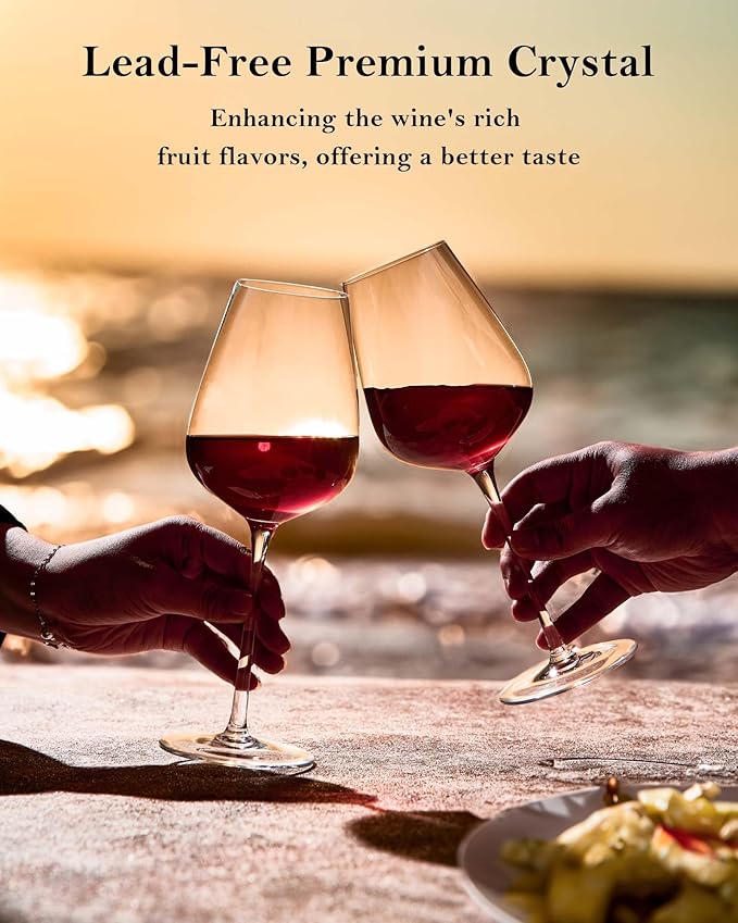 - Ultra Clear and Thin but Sturdy: Crystal Glass is perfectly clear and the ultra thin rim with cold cutting enhancing the perceived quality and flavor of any red/white wine. These red/white wine glasses are not too thick yet strong enough to stand daily washing