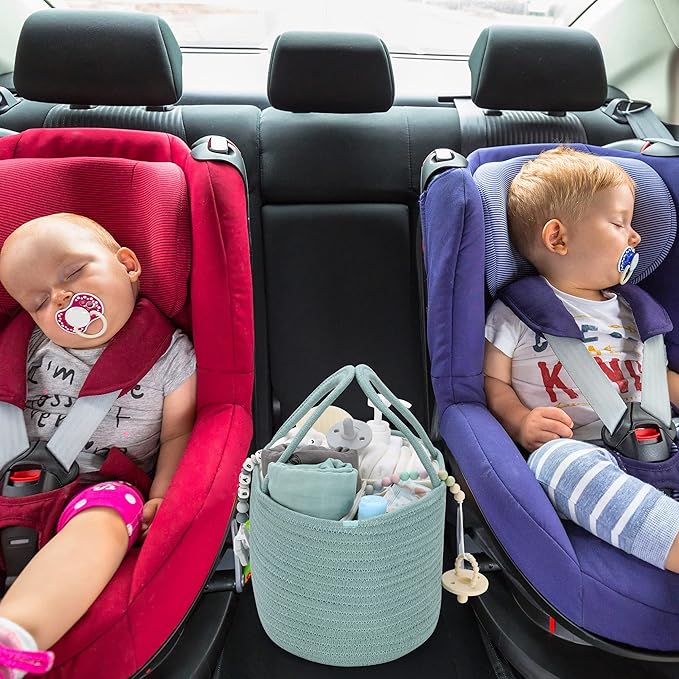 Large Baby Diaper Caddy Organizer for Girl Boy Rope Nursery Storage Bin Basket Portable Holder Tote Bag for Changing Table Car Travel Baby Shower Gifts Newborn Essentials Registry Must Have Green