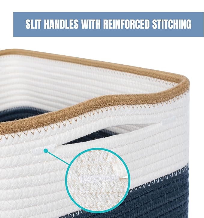 - Handcrafted & No Sharp Edges - Handmade from premium materials, our baskets are soft to the touch, yet sturdy enough to hold its shape. The workmanship ensures there are no sharp or hard edges to scratch furniture. Use them with complete peace of mind in recreation room, playroom, pet room, living room, bedroom, nursery room, bathroom, laundry room, mudroom, pantry, arts & crafts room, home office or even garage.