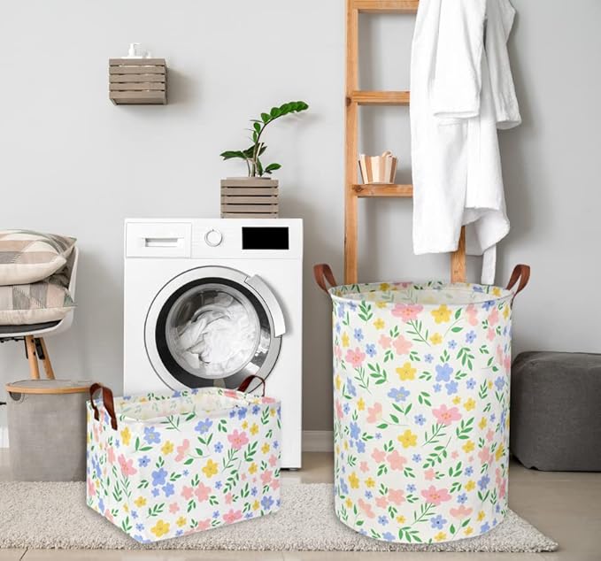 - ADVANTAGE OF DESIGN:1.Practical design: flower print baby girl basket stands when in use and can be folded for space saving and easy storage when you do not want to use it at the time.2.Reinforced handles: kids toy basket has handles on both sides, which is easy to carry.
