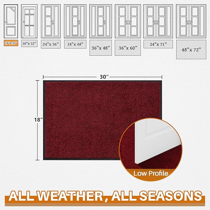 Mibao Front Door Mat, Dirt Trapper Welcome Mat for Outdoor Indoor, Non-Slip Waterproof Doormat, Durable Machine Washable Low Profile Entry Rug for Back Door Outside Patio Porch, 30" x 18", Red