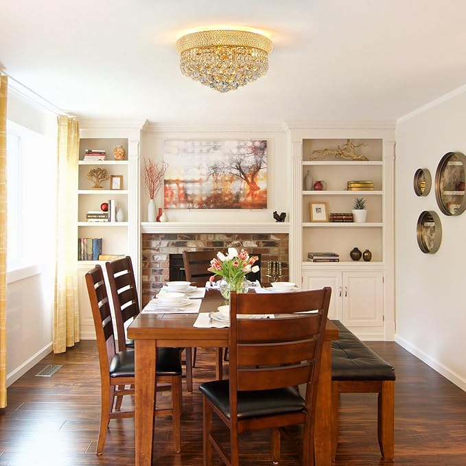 7-Light Crystal Flush Mount Chandelier Ceiling Light Fixture for Living Room Dining Room Bedroom Foyer Entryway Hallway Closet Bathroom (Gold D18)