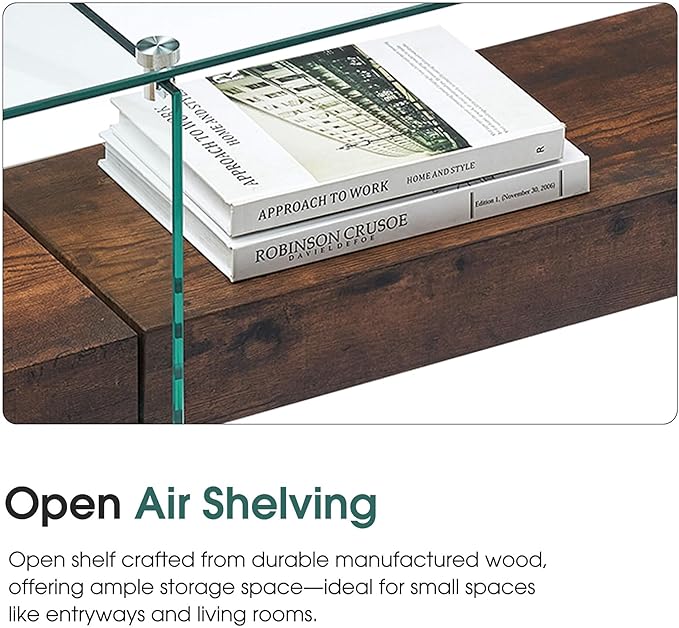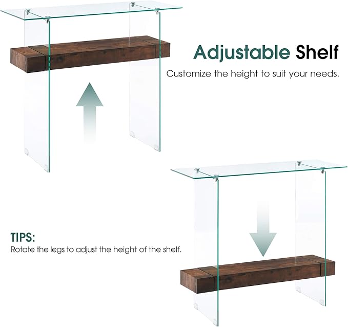 - 2-Tier Storage Entryway Table: Featuring two open shelves, this console table provides ample storage and display space. Its versatile design makes it a functional addition to your living room, entryway, or hallway, helping keep your space organized