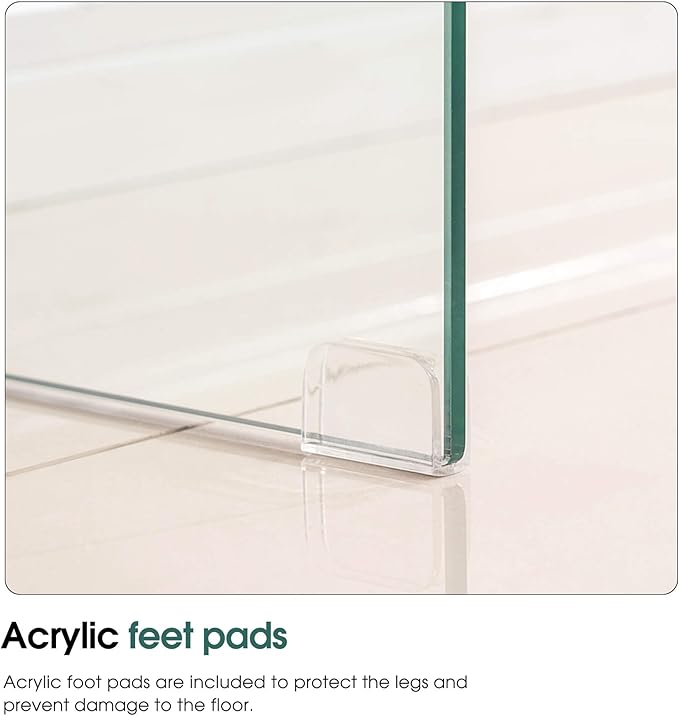 - Premium Shelf Brackets & Floor Protection Pads: Four premium brackets securely connect the glass tabletop to the base. Acrylic feet pads on the bottom protect your floors from scratches and scuffs, ensuring lasting durability