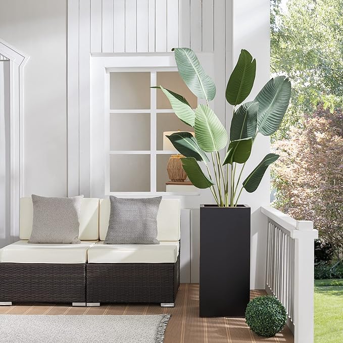 - 【OUTDOOR/INDOOR DECOR】This tall rectangular planter is suitable for outdoor/indoor decoration with its modern style and sturdy construction, adding a touch of beauty to garden, entrance, front porch, balcony, patio, deck or indoor hall.