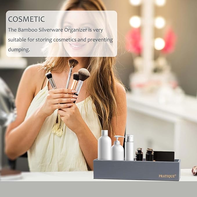 Bamboo Drawer Organizer - Kitchen Utensil Organizer Silverware Tray Cutlery Holder,Office Desk Supplies and Accessories,8.9 * 3 * 2.6,Grey