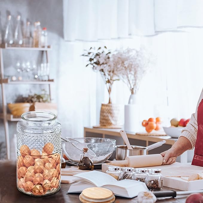 - 【Airtight Bamboo Lids】Our storage jar with bamboo lid and rubber gasket clamp to ensure a leak-proof and airtight seal, keep your food dry and fresh for a long time.