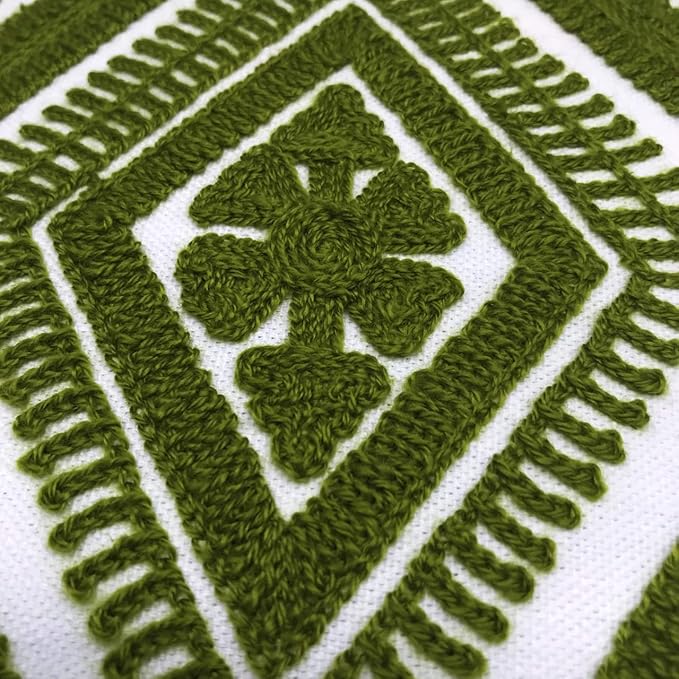 Alysheer Embroidered Decorative Throw Pillow Covers 18x18 inches Set of 2 Pieces, Boho Geometric Modern Chic Classic Pattern Cotton Cushion Cases for Sofa Couch Bed Living Room(Olive Green)