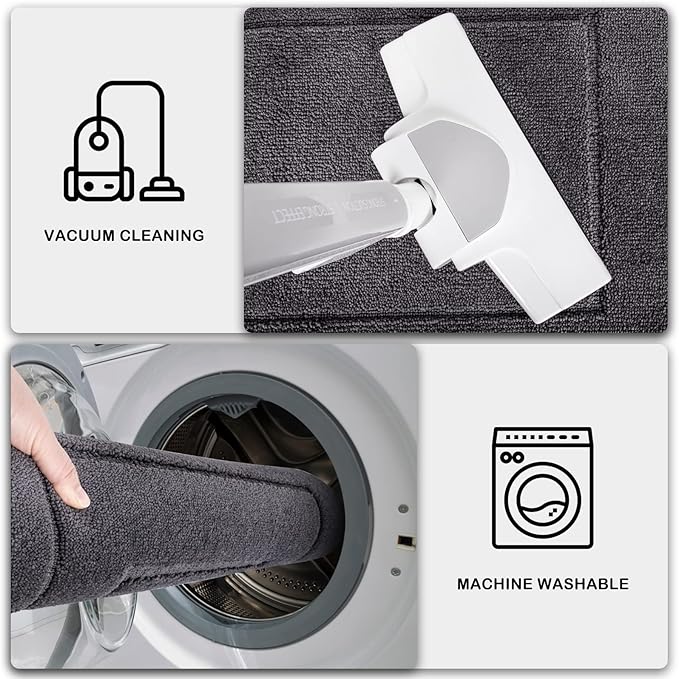 - EASY TO CLEAN: The stain and fade resistant polyester carpet surface can be easily clean by vacuuming. For a deeper clean, machine wash separately in cold water, using mild detergent. Tumble dry, no heat. Do not use bleach or fabric softener. Our door mat will not fade or wear out and will remain like new even after repeated washing.