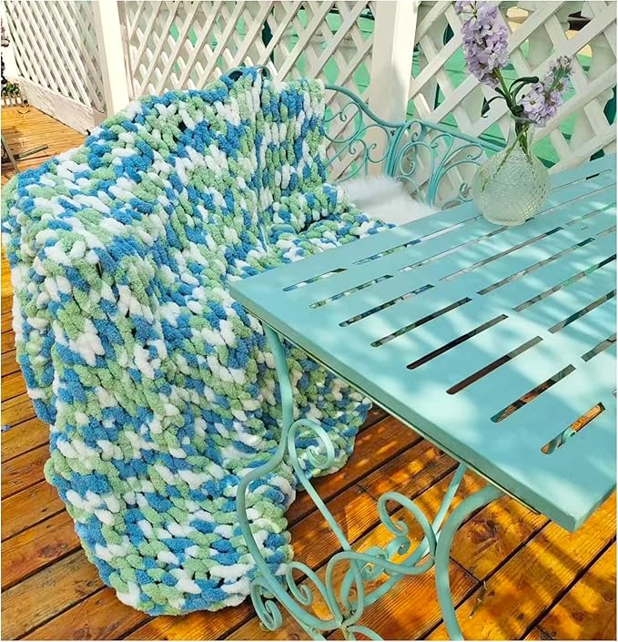 - COZY & WARM - Our chunky chenille blanket is 100% hand-knitted from Jumbo Chenille Yarn. This plush chunky blanket will provide the right warmth for a cozy night in bed.