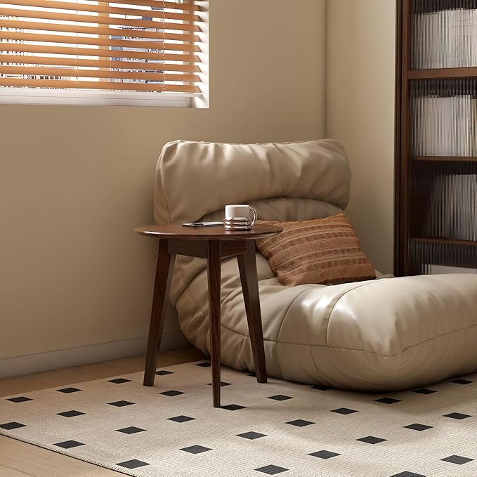 100% Solid Oak Round Side Table, Small Bedside Table for Small Spaces, Living Room End Table with Stable Frame, Modern Nightstand for Bedroom Couch, (Walnut, 17.71" D x 19.68" H)
