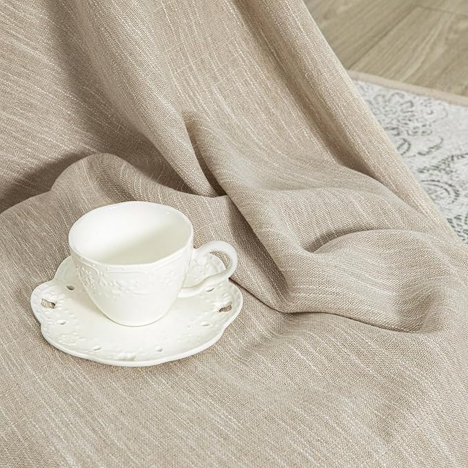 MYSKY HOME Ceiling Curtains for Living Room, Soft Cotton Curtain Polyester Blend Semi Sheers Light Filtering Window Treatments Decor Back Tab Top Panel, 50" x 95", Light Oatmeal, 2 PCs