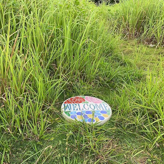 - ATTRACTIVE: This tile has an amazing design. There are welcome sign and flowers on the front side, You will receive many compliments if you put it in your garden.