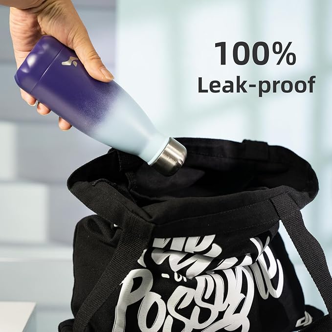 - Double Wall Vacuum Water Bottle: Keeps your drink ice cold for up to 24 hours and hot for up to 12 hours.Leak proof and dust proof design ensures the beverages stay securely contained.Non-sweat exterior prevents condensation and keeps your hands dry