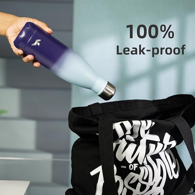 - Double Wall Vacuum Water Bottle: Keeps your drink ice cold for up to 24 hours and hot for up to 12 hours.Leak proof and dust proof design ensures the beverages stay securely contained.Non-sweat exterior prevents condensation and keeps your hands dry