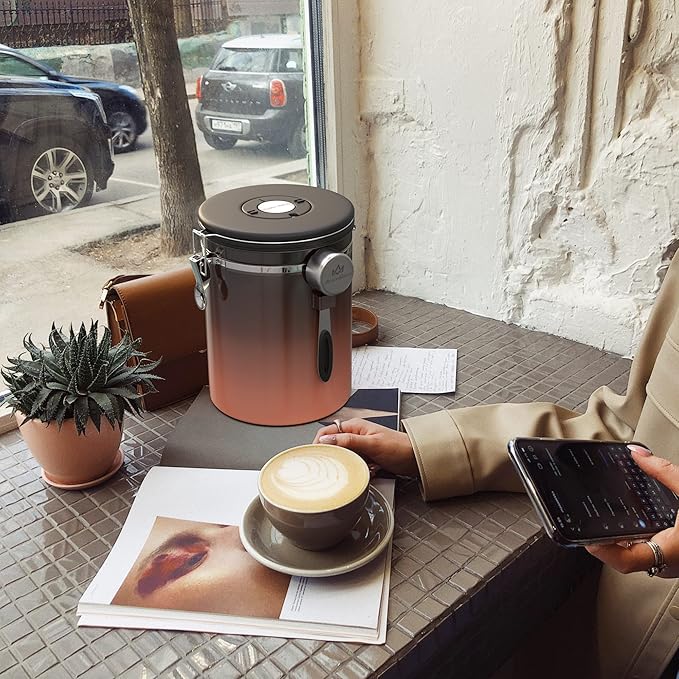 - 【Date tracking and airtightness】The coffee canister is designed with a lock, the lid is equipped with a silicone gasket, and there is a date tracking wheel on the top of the lid. The shelf life can be set when the coffee is loaded. The next time you open it, you will know how long it will be stored.