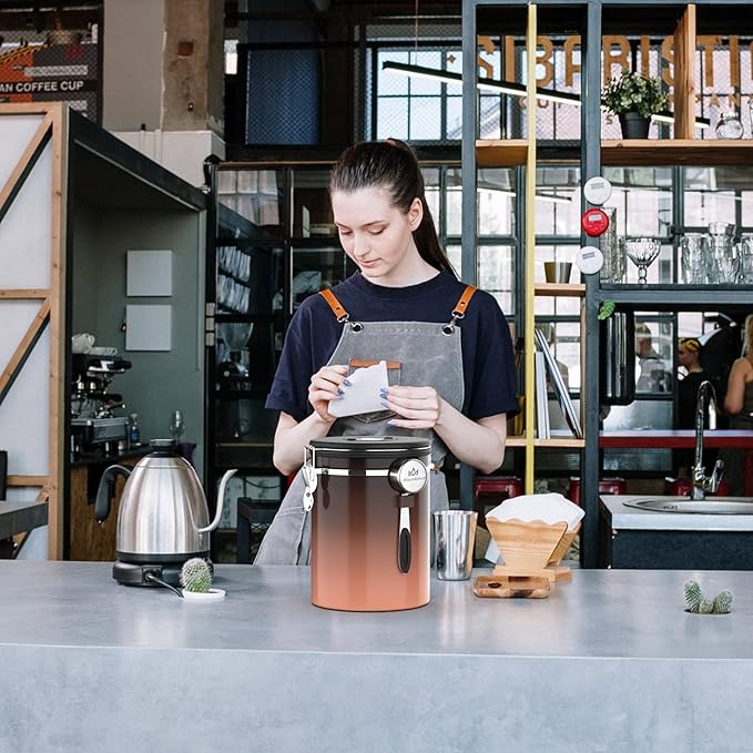 35OZ Coffee Canister for ground coffee with Date Tracker,copper color 304 Stainless Steel Kitchen Food Airtight storage container for Coffee Beans or Grounds, Tea, Sugar(35oz-Gradient)