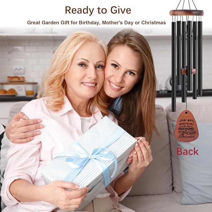 Wind Chimes for Outside, 32" Butterfly Windchime for Outdoor, Butterfly Gifts for Women Mom Sister, Garden Patio Gift Ideas for Friend Co-Worker (Black)