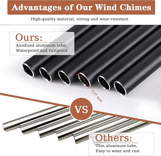 - PRO MELODY-- The professional tuner assisted with the tuning, of six different tubes to adjust to a deep tonal B major pentatonic scale. The crisp melody produced by the chimes as the breeze blows, the atmosphere is intoxicating and relaxing. Adjustable strike plate for different sounds and even a silent mode if needed. A balance between enjoying the melody and being quiet.