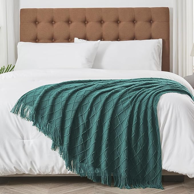 - 【FANTASTICAL COMBINATION】: Decorative blankets and throws ,nice raised diamond shape knit design and well-arranged fringes. It's couldn't be better to decorate your home for Christmas, Thanksgiving, and other holidays. A good cozy blanket is a combination of the right price, satisfactory adaptability, and lovely design.