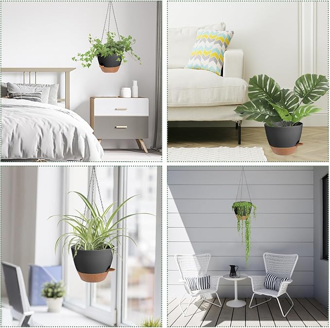 - Removable Trays - Hanging pots for plants indoor come with a removable tray that serves as a self-watering reservoir, storing a certain amount of water for the plants (10-14 days). You don't have to worry about your plants running out of water when you're away on a business trip or traveling.