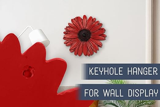 NAT & Jules Gerbera Daisy Flower Shaped Dimensional Indoor Outdoor 12 inch Cast Resin Decorative Garden Stepping Stone, Patio, Walkway Sculpture Yard Art, Red