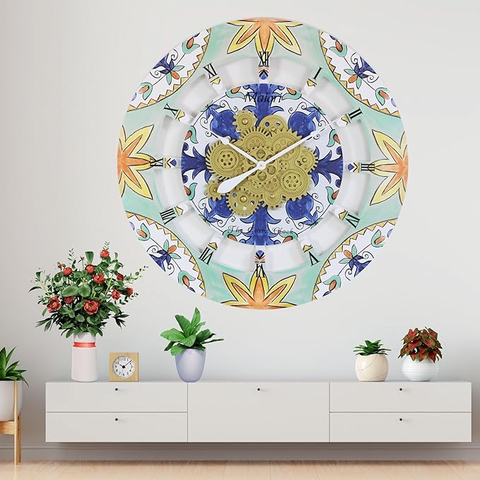 - Wall Clock Italy Collection with Real Moving Gears is an Art Timepiece inspired by the Famous Amalfi coast Tiles in Italy