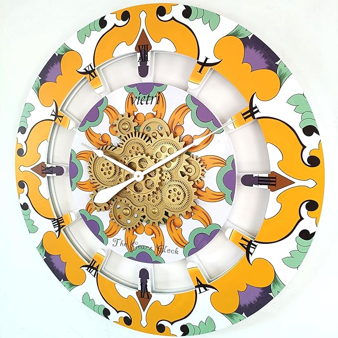 The Gears Clock Wall Clock Italy Collection with Moving Gears (Vietri, 36 inch Round)